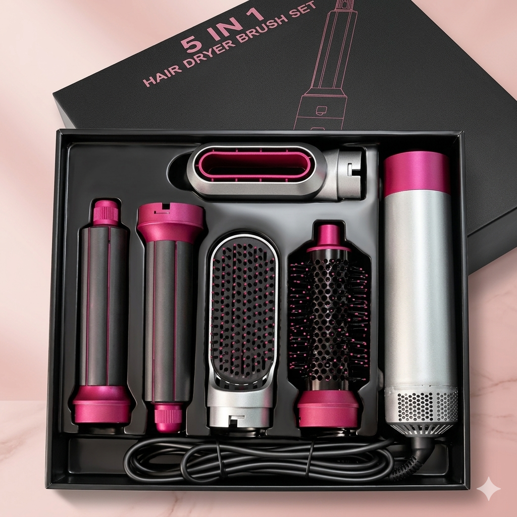 5 in 1 Electric Hair Dryer Brush | Blow Dryer Hair Comb Curling Wand Detachable Brush Kit Negative Ion Straightener Hair Curler ( random color)
