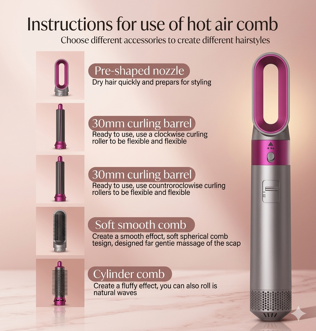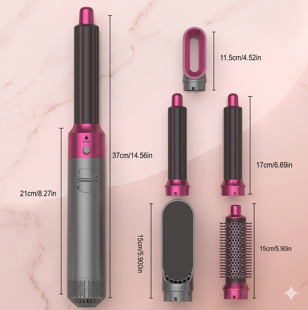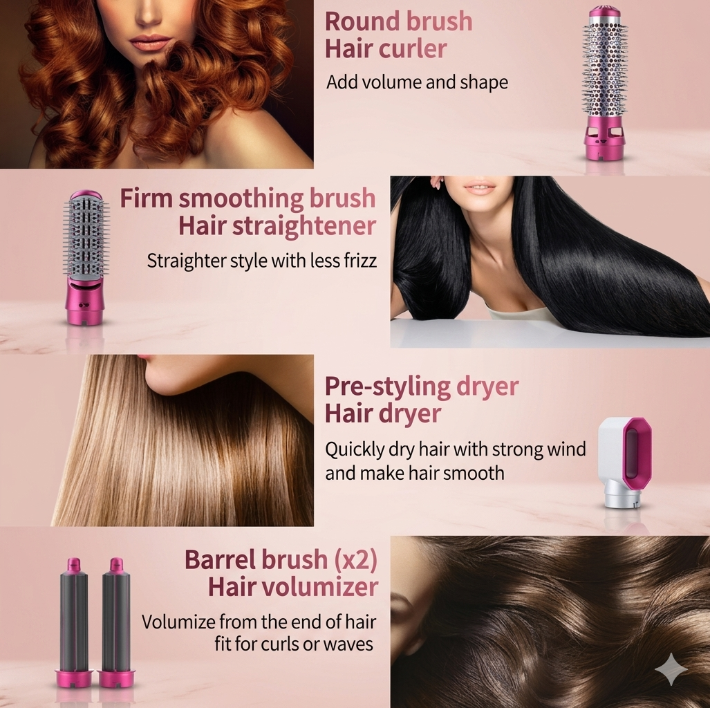 - 【5 IN 1 Hair Dryer Styling Tool】The hot air brush dryer for women comes with five interchangeable brush attachments that make straightening,curling,volumizing, and scalp massaging a breeze. Combining blow drying with styling brushes, can fit different hair lengths and create different styles.